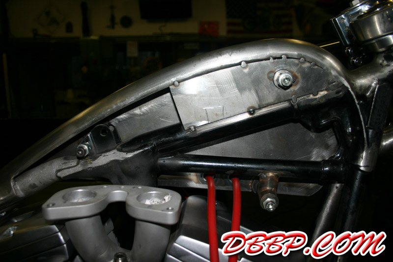 steel chain tensioners. The left tank has been modified to with