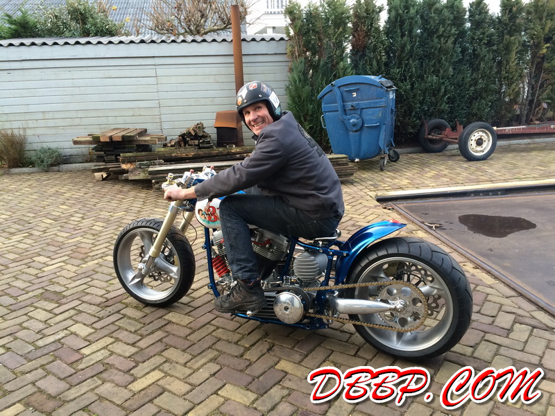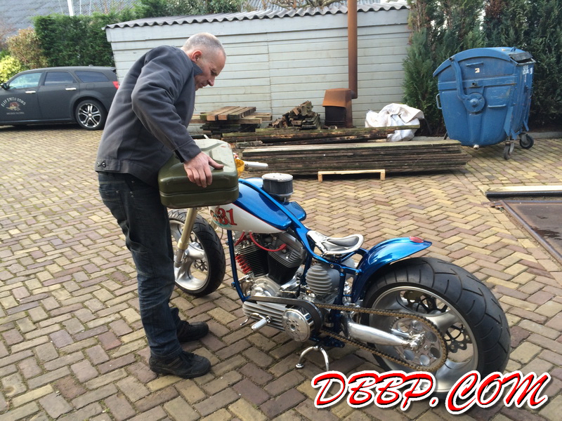 After relocating the ignition switch and installing different battery, coil and ignition it was time for a testride. The bike is now much easier to kickstart and runs great! One thing we still need to do is install a jiffy stand...