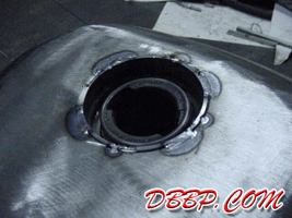 by the old fuelcap, drilling a new hole that is smaller and more