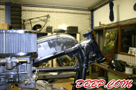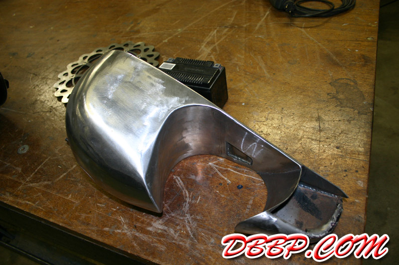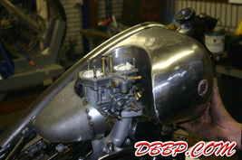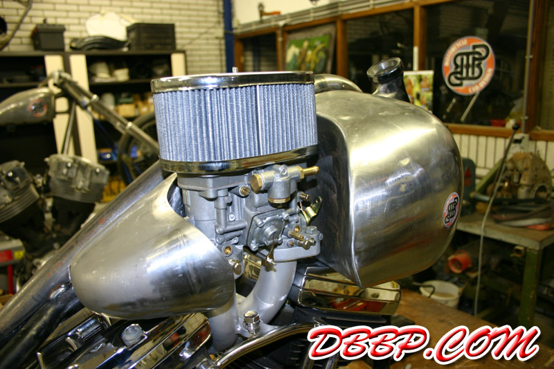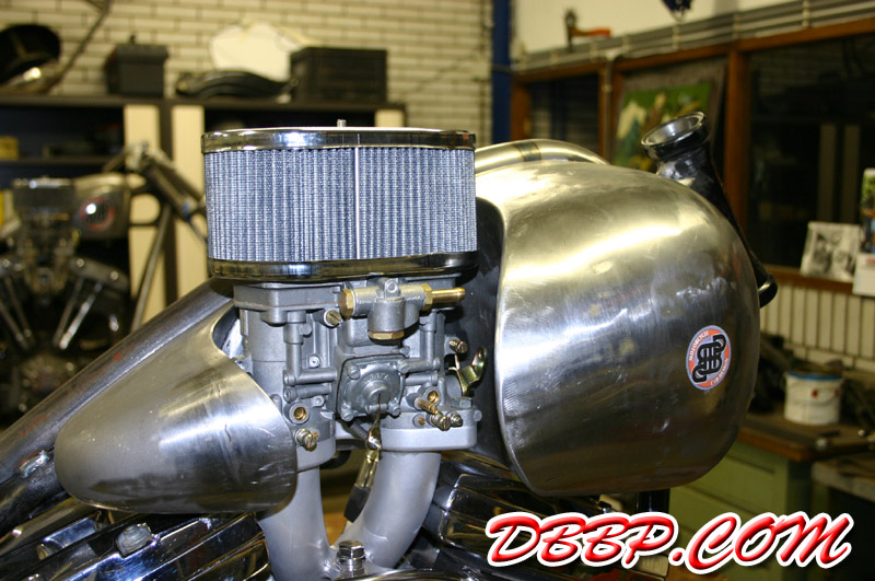 Aad filled up the remaining pieces with sheet metal, the little opening behind the carb-cutout is to make room for the choke. In the meantime the Tolle pop-up gascap arrived