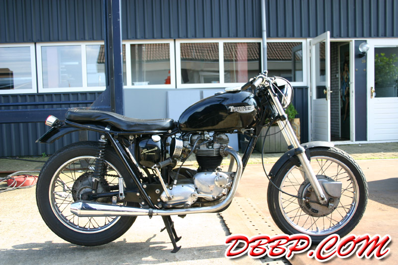 This week we started hardtailing Aad's 1964 Triumph T120. Here are some pics of the "before", next week I will show you what we have done to it so far