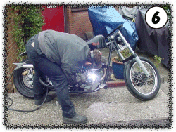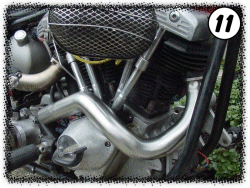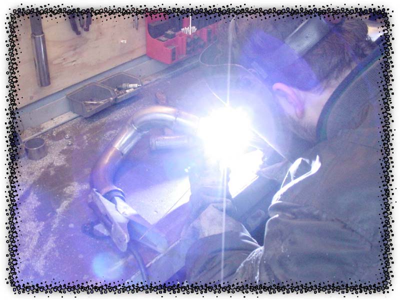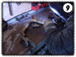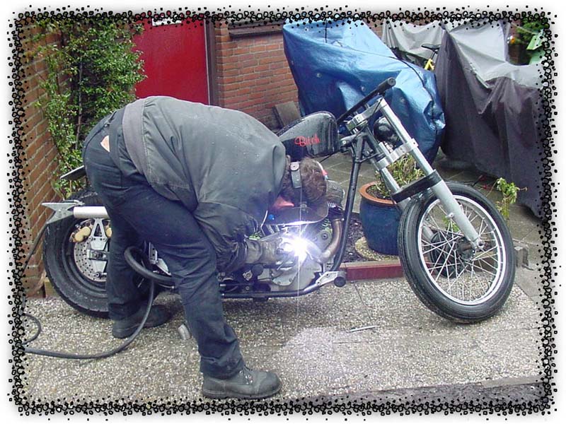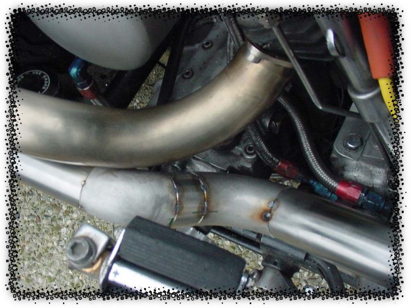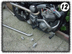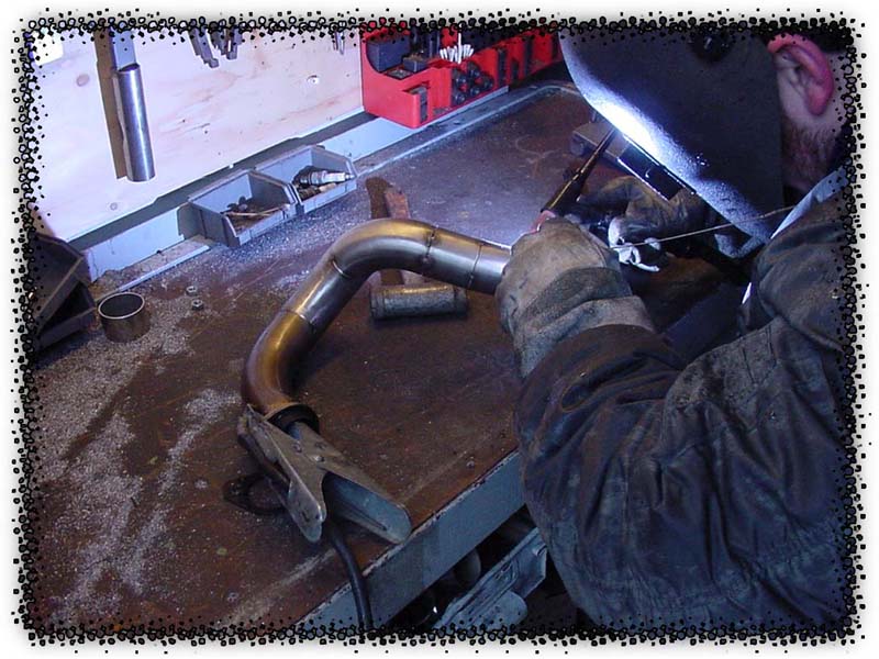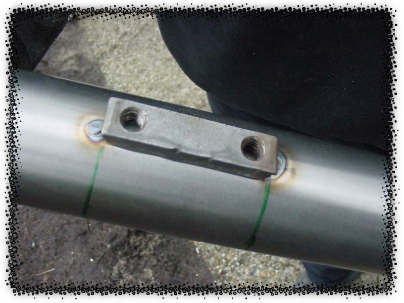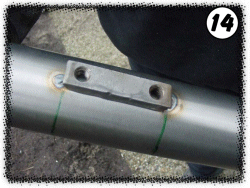 because the kickstarter, the rear pipe and 14) A 10 mm thick lump of stainless welded to the back of the new pipe for a hidden mount 15) Well, this is Hans, the guy that welded these